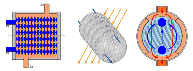Desky jsou přizpůsobeny plášti tak aby optimalizovaly průtok a distribuci médií a tím i výkon výměníku. „SUPERMAX“ jednotky mohou být navrženy jako, souproudé, protiproudé nebo s funkcí příčného toku.